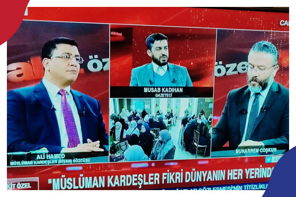 في إطار اهتمام الإعلام التركي بذكرى تأسيس جماعة الإخوان المسلمين، وفي أول لقاء تلفزيوني له، حلّ علي حمد، المتحدث الإعلامي الجديد باسم الجماعة في الخارج، ضيفا على قناة Akit التركية، مساء أمس الأربعاء 23 مارس 2022.
