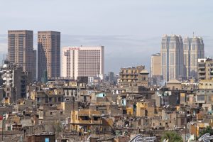 أحياء عشوائية في القاهرة بالقرب من النيل وخلفها فنادق ومبانٍ فارهة-القاهرة 2010/ Istock